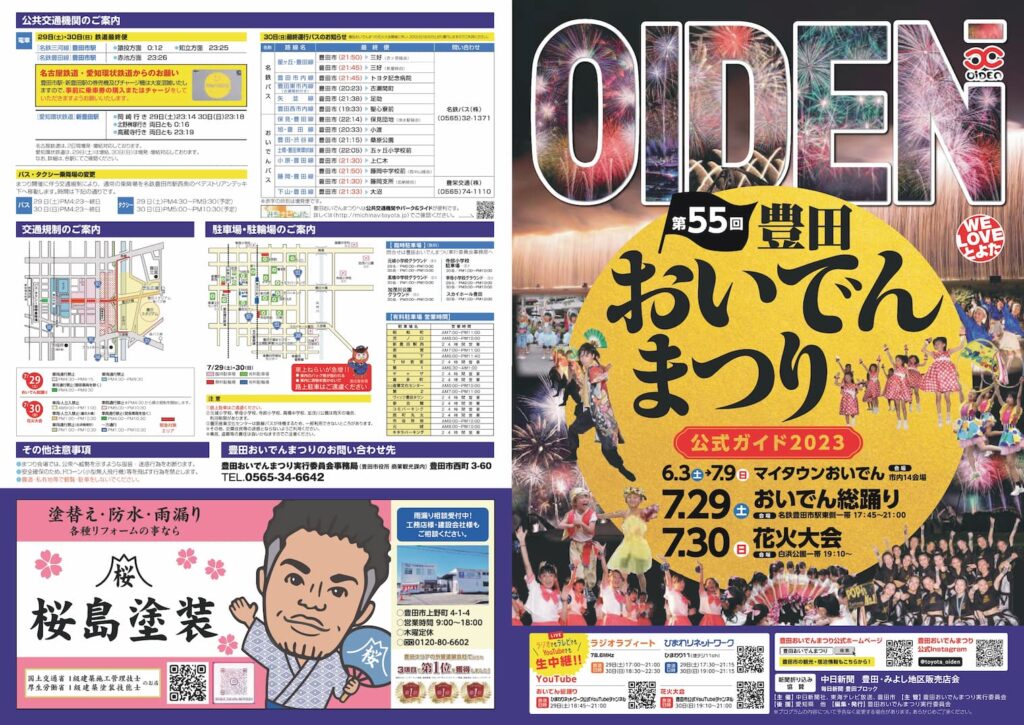 - 「豊田おいでんまつり」開催日:2023年7月29日(土)、30日(日) ※こちらの詳細については、公式HPで確認してください!