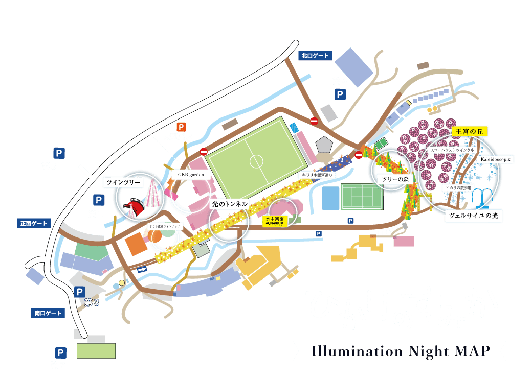 イルミネーション開催場所のMAPです。園内マップと合わせてご活用ください。